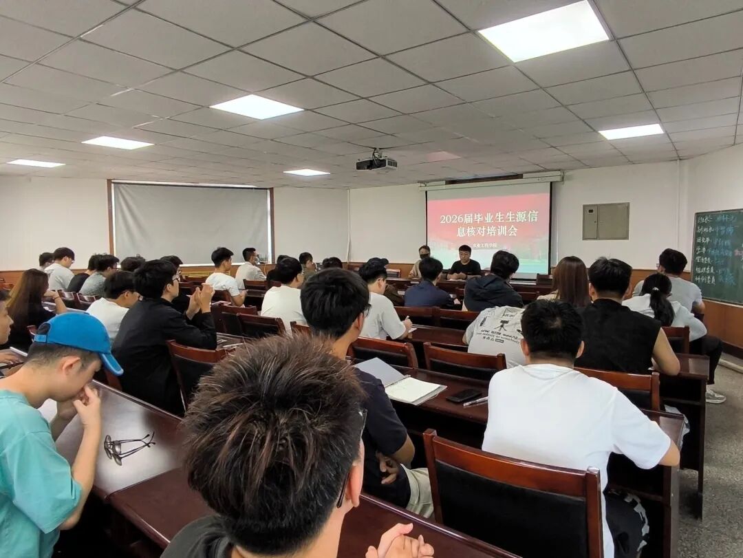 9月13日上午,学院在二楼会议室召开2026届毕业生生源信息核对培训会。学院分团委副书记张斌、薛孟君出席会议并部署工作,2026届全体毕业班班团参会,共同学习生源信息核对要点与操作规范。