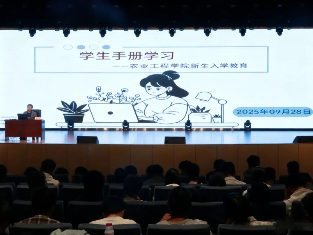 为帮助2025级新生尽快适应大学环境,规范自身行为,明确学习目标,9月28日,农业工程学院在行远堂举办学生手册专题讲解会。本次讲解会作为新生入学教育系列活动的关键一环,由学院分团委副书记薛孟君老师担任主讲,全体大一新生到场聆听。