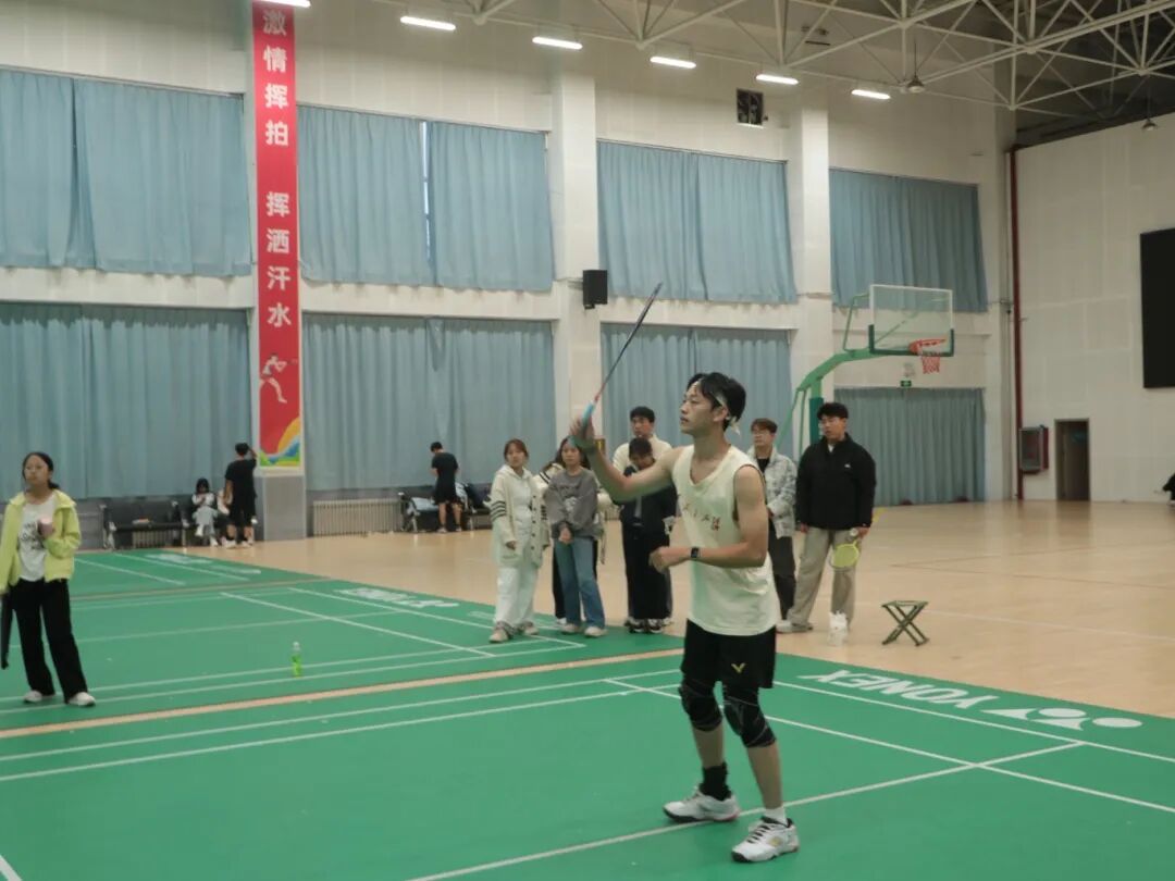 罗皓轩同学在小组赛中沉着应战、稳定发挥,以黑马之姿脱颖而出。进入淘汰赛阶段,竞争愈发激烈。面对强劲对手,他毫不畏惧,将高远球的精准控制、网前小球的细腻处理与后场劈杀的凌厉攻势巧妙结合,展现出全面的技术素养与顽强的意志品质。他的出色表现不仅赢得了现场观众的阵阵掌声,也充分彰显了我院学子在体育赛场上活力四射、勇于争先的青春风采。