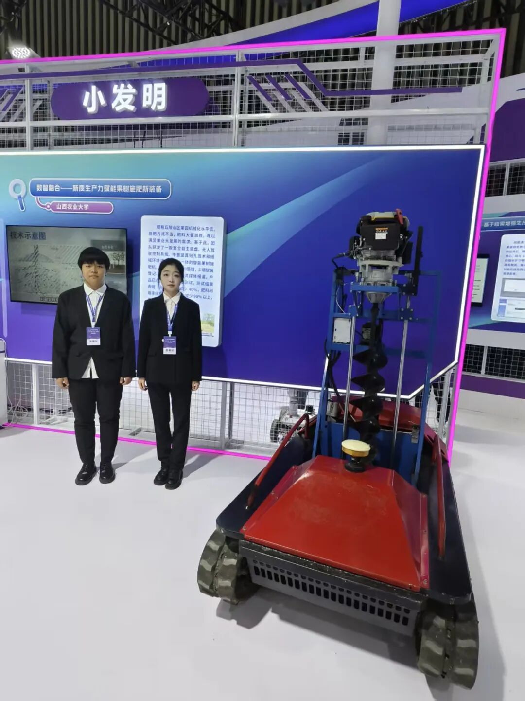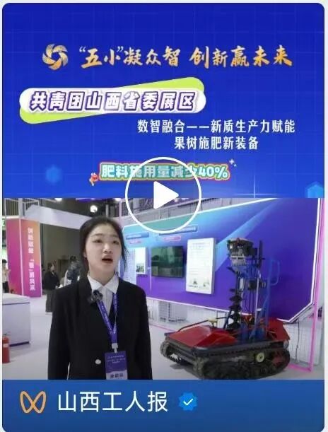 金秋晋阳湖,创新绽芳华。11月5日至7日,2025年山西省“五小”创新大赛优秀成果展在太原晋阳湖国际会展中心隆重举行,农业工程学院学生张晶团队研发的“数智融合——新质生产力赋能果树施肥新装备”凭借鲜明的技术创新和实用价值参展亮相,并获《山西工人报》报道,成为展会农业科技领域的一大亮点。