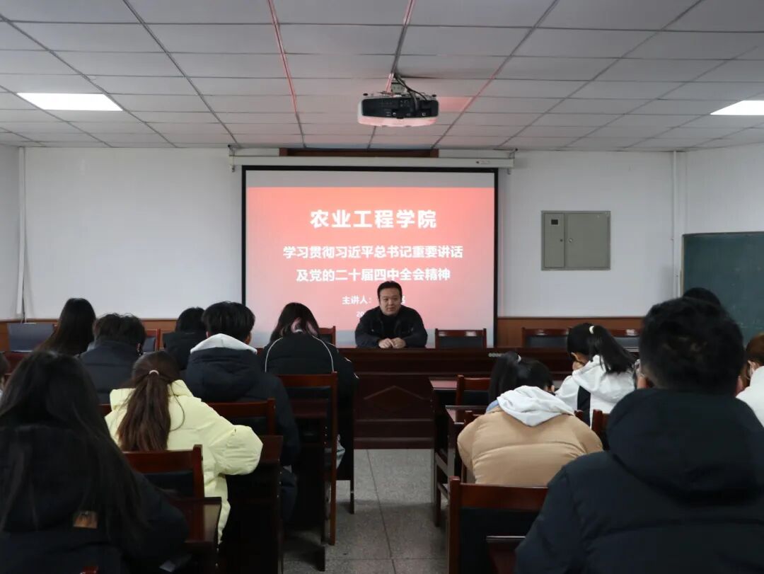 为推动党的二十届四中全会精神在学院落地生根,统一师生思想行动到党中央决策部署上来,11月25日,农业工程学院于学院二楼会议室召开专题学习会。会议由辅导员王铭铭老师主持,院学生会及各学生组织成员积极参与,深入学习习近平总书记重要讲话精神与全会核心要义。