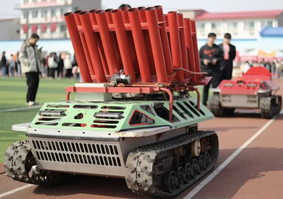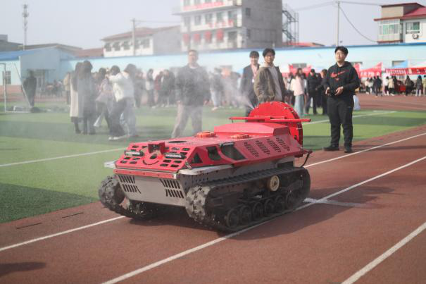 活动现场,无人机创新团队带来的三台专业设备一经亮相,便迅速成为全场关注的焦点。按照展示流程,植保坦克与礼炮坦克依次启动,平稳地绕操场行进一周,行进过程中,设备展现出稳定可靠的移动性能与灵活精准的操控状态,让现场同学直观感受到科技的魅力,不少同学纷纷驻足观看、拍照记录。在设备静态展示与动态行进的全程,团队成员始终以耐心细致的态度,主动为前来咨询的同学讲解各类设备的基本参数、核心功能、日常操作方法,同时详细介绍社团的学习体系、实践训练安排以及各类科创活动参与机会,对同学们提出的关于入队要求、技能培养等疑问逐一认真解答,现场交流氛围热烈非凡。