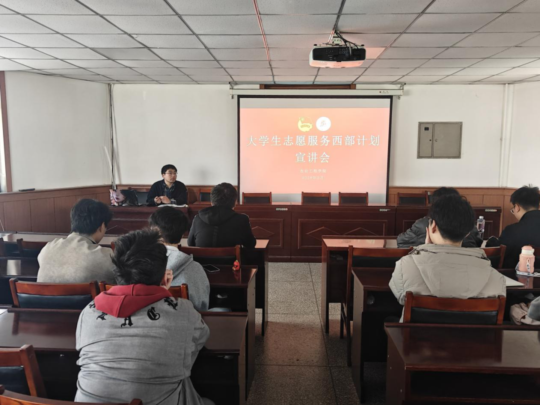 为引导青年学子响应国家号召,主动投身西部建设,以青春之姿践行时代使命,3月24日,农业工程学院在学院二楼会议室成功举办大学生志愿服务西部计划宣讲会。本次宣讲会特邀学院分团委副书记薛孟君老师担任主讲人,2026届毕业生代表齐聚现场,共话西部服务与青春成长。